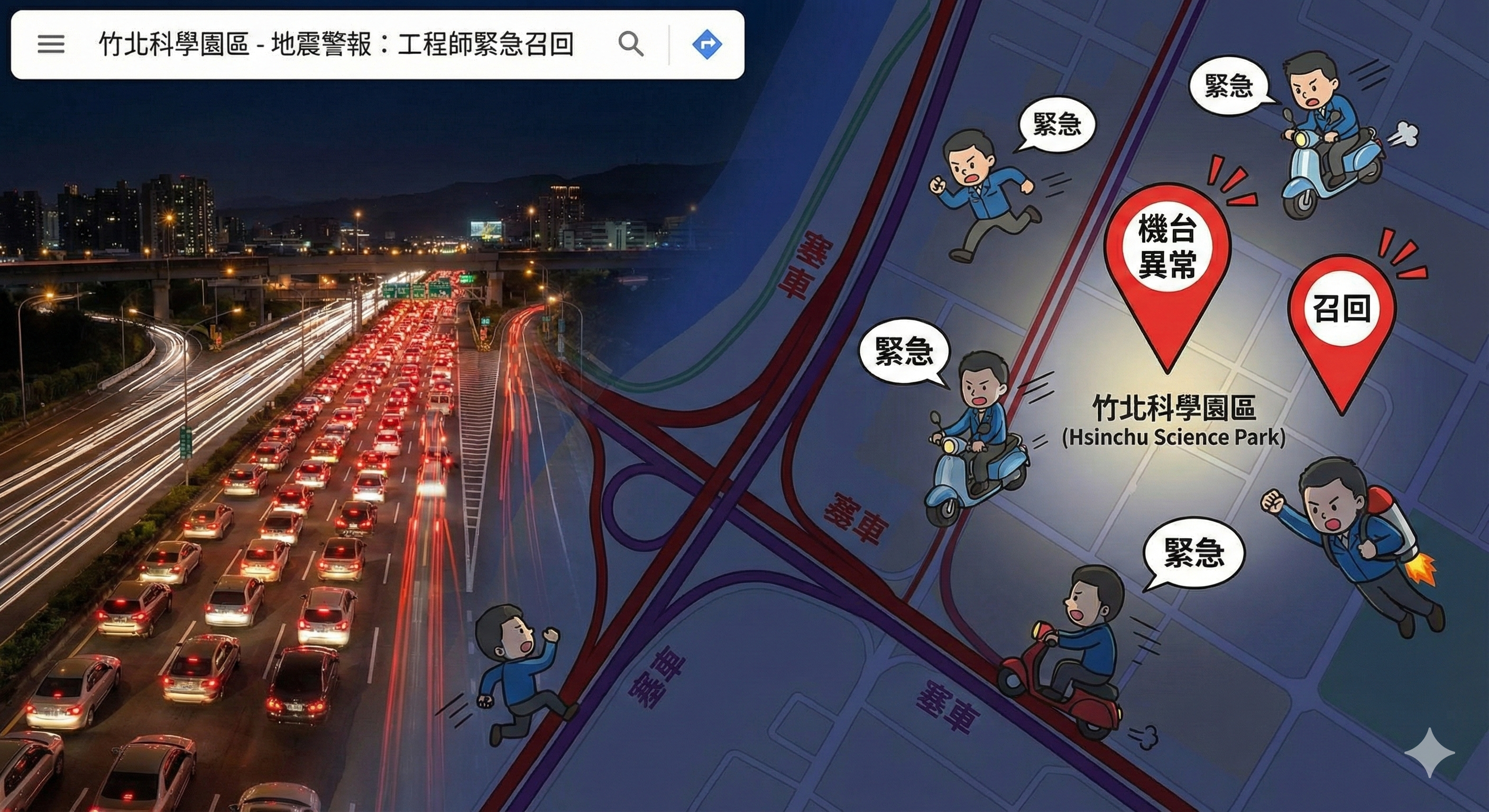 原來,這些「逆行者」全是竹科工程師。對於半導體與高科技產業而言,高精密的機台對震動極為敏感。一旦發生達到特定震度的地震,機台會自動啟動保護機制停機(Down機)。此時,無論是製程工程師(PE)還是設備工程師(EE),若是值班或被Call out(緊急召回),都必須在最短時間內趕回廠區進行檢測、復歸(復機),以確保產線損失降到最低。