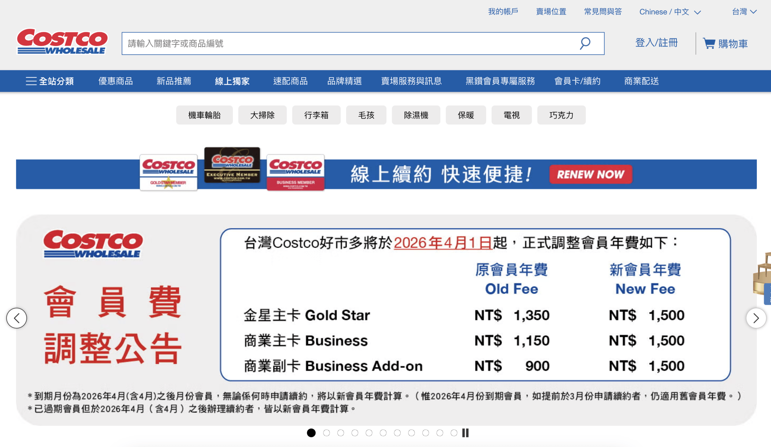 好市多會員價調漲公告。(圖/翻攝自好市多官網)