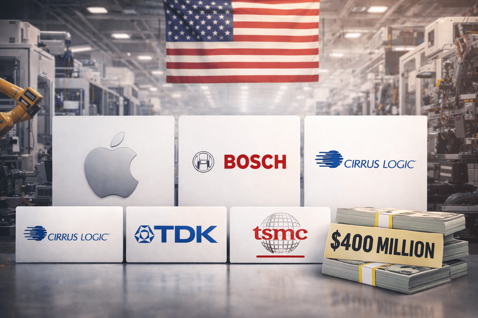蘋果宣布,將博世、Cirrus Logic、TDK與Qnity Electronics納入其「美國製造計畫」,並預計在2030年前投入4億美元,擴大關鍵零組件在美國本土的生產能力。