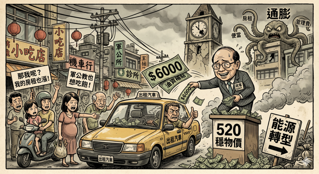 這六千元救不了運將的未來,也救不了民眾的錢包。它唯一的功效,是讓政府在面對民怨沸騰時,能有一個可以逃避結構性問題的樹洞。與其不斷玩弄這種「頭痛醫頭」的補貼遊戲,不如誠實面對能源成本與薪資結構失衡的殘局。台灣民眾要的是一份能跟上物價的薪資,而不是在每次政治大戲上演前,才能領到那份帶著施捨意味的、拿未來環境去換的「物價紅包」。