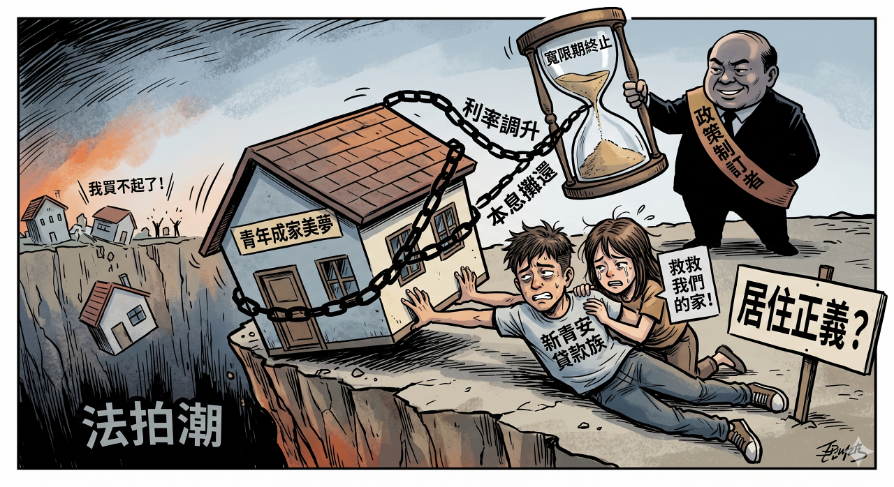 2026 年的台灣房市,正瀰漫著一種令人窒息的「末日感」。三年前,政府為了挽救低迷的青年支持度,推出了宛如迷幻藥的「新青安貸款」。那時,五年的寬限期、低廉的利率、長達四十年的還款期,讓無數原本買不起房的年輕人,誤以為自己終於拿到了通往中產階級的門票。