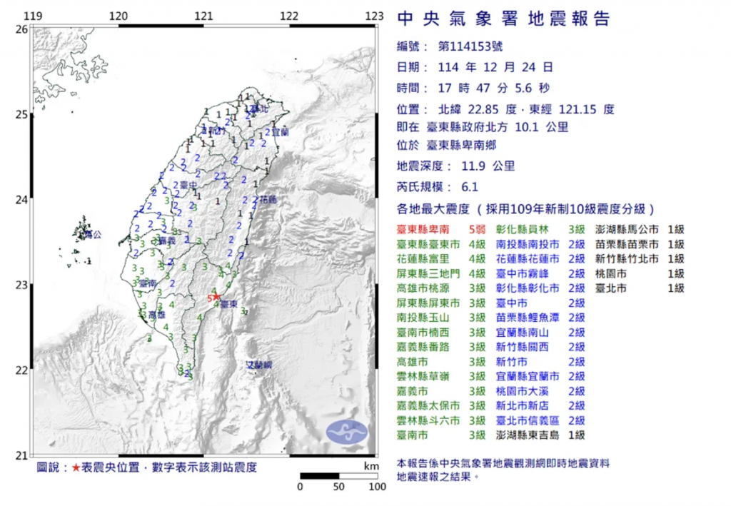 12 月 24 日傍晚,民眾準備迎接平安夜之際,地牛卻不安分地翻身。根據中央氣象署最新觀測資料,下午 5 時 47 分發生芮氏規模…